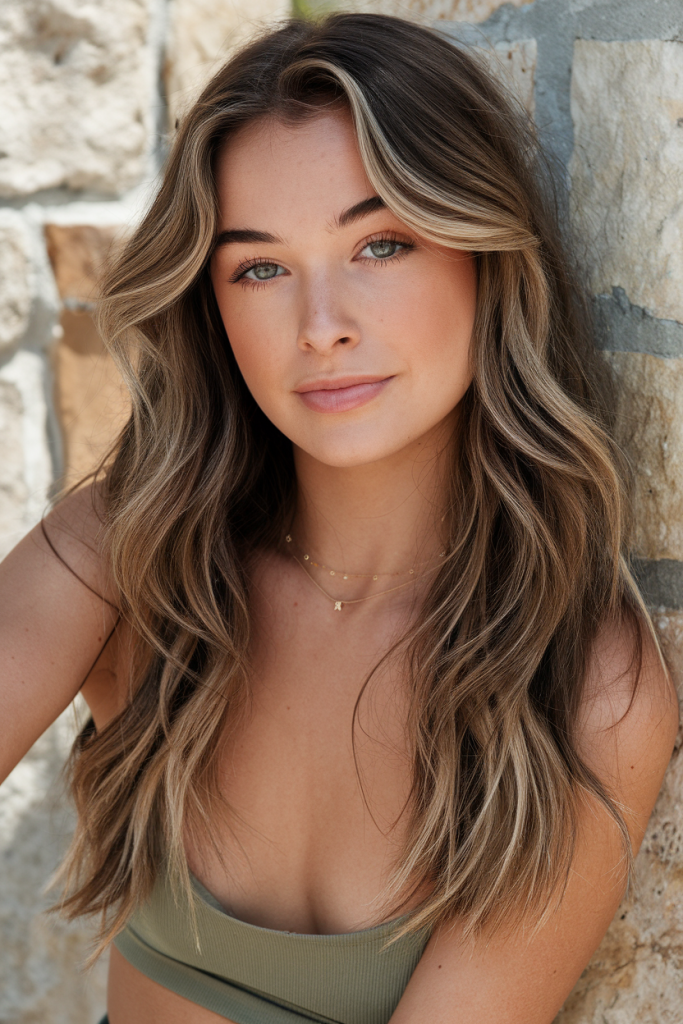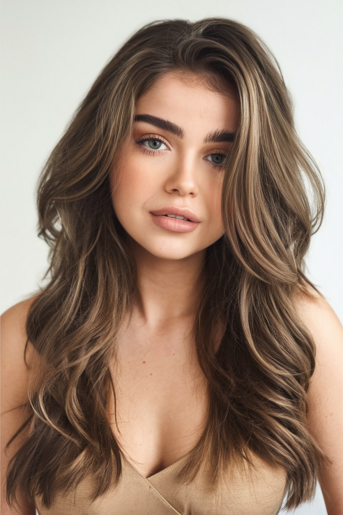 This effortlessly glam style brings a fresh take on Brunette for spring and summer. Subtle highlights contour the face and add sun-kissed depth to the long, flowing waves. A center part keeps it modern, giving off a clean, symmetrical energy that complements natural beauty. This is a staple look for 2025 women—approachable, versatile, and stunning in its simplicity.
