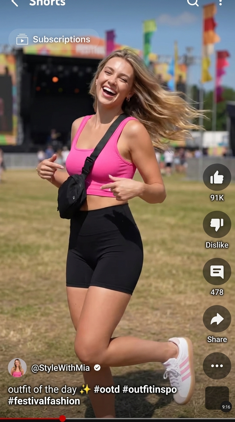 This sporty look pairs a hot pink Comfrt Rib Contour Crop Tank ($25) with supportive black biker shorts ($33.60). We tested the shorts during a three-hour outdoor game session and found they provided full coverage without any chafing, a huge plus for active days. The outfit is grounded by white retro-inspired shoes ($69.98) with subtle pink and black details. My only note is that the shorts’ spandex blend fabric can feel a bit synthetic in very hot, humid weather, so keep that in mind for intense summer workouts.