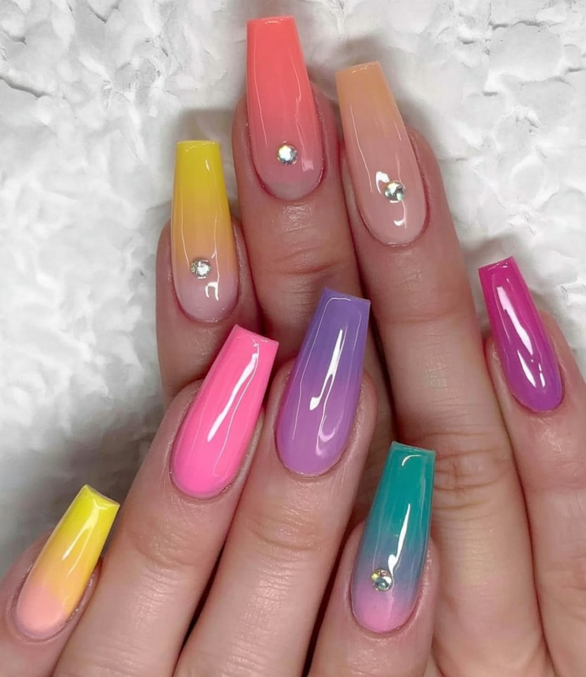 3. Ombre rainbow with rhinestones