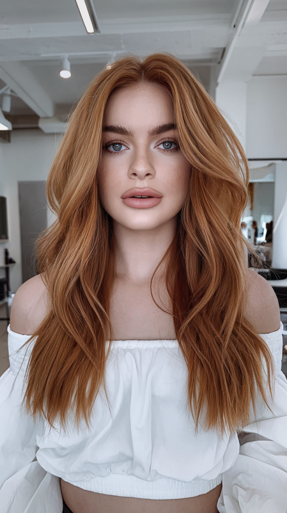 If you’re craving drama without bleach, this solid color auburn is a showstopper. It’s warm, rich, and radiates luxury. The long hair cut allows the color to take center stage, and the subtle layering gives just enough bounce without pulling focus.