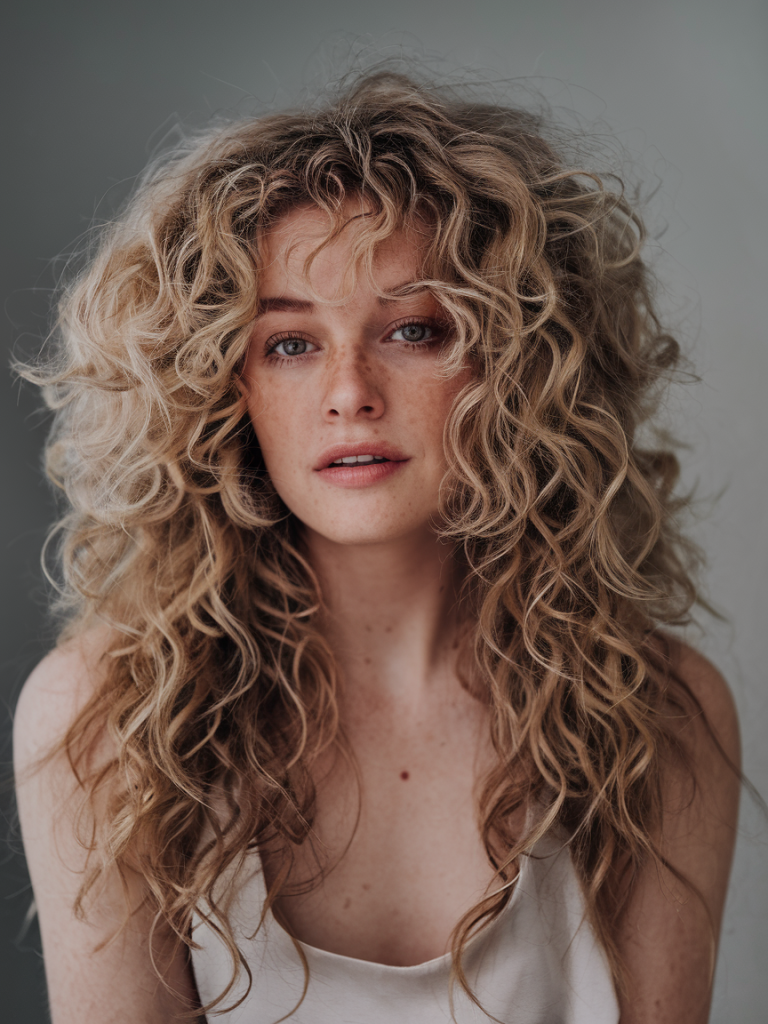It’s a great option for dark hair that needs a touch of golden warmth. Flowy linen dresses or minimalist tanks with statement earrings make a perfect match. For styling, use curl cream and a diffuser to keep the look defined yet touchable.