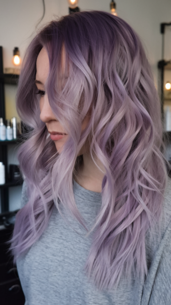 Pair this ethereal color with soft knits or neutral-toned streetwear. It’s perfect for blondes wanting a fresh twist or brunettes going full transformative. Pro tip: Use a sulfate-free purple shampoo to keep the tone vibrant.