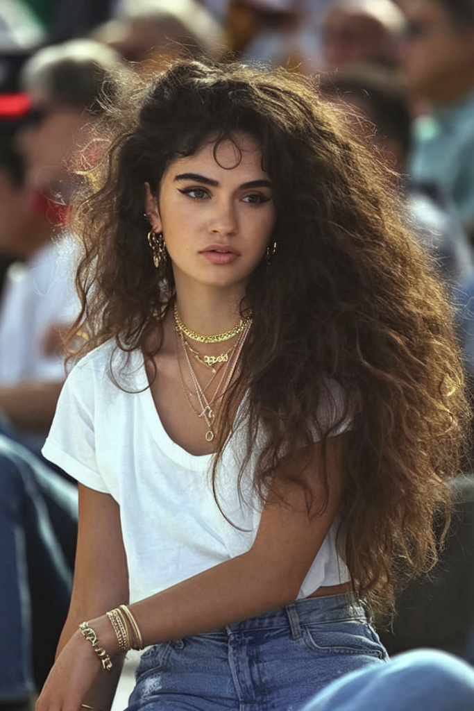 To achieve this, use a diffuser on wet curls or allow hair to air dry with curl-enhancing mousse. Once dry, gently pick the roots and use lightweight oil for shine. It’s not just a style—it’s a statement. Layer with accessories like gold hoops or chunky necklaces for extra flair.