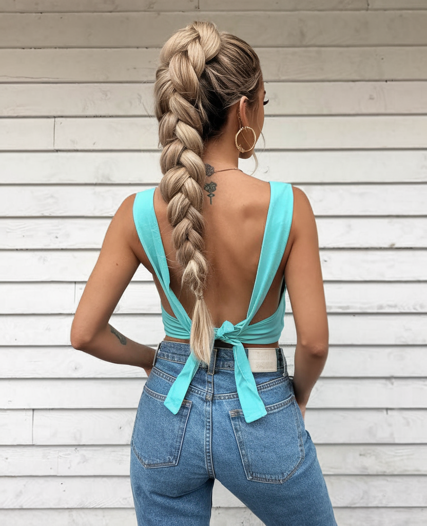 This dramatic oversized braid is both playful and commanding—a true power move for the summer. Perfect for long hair, it keeps things neat while highlighting your features and shoulders. The voluminous look adds instant glam, making it ideal for both casual and dressed-up days.