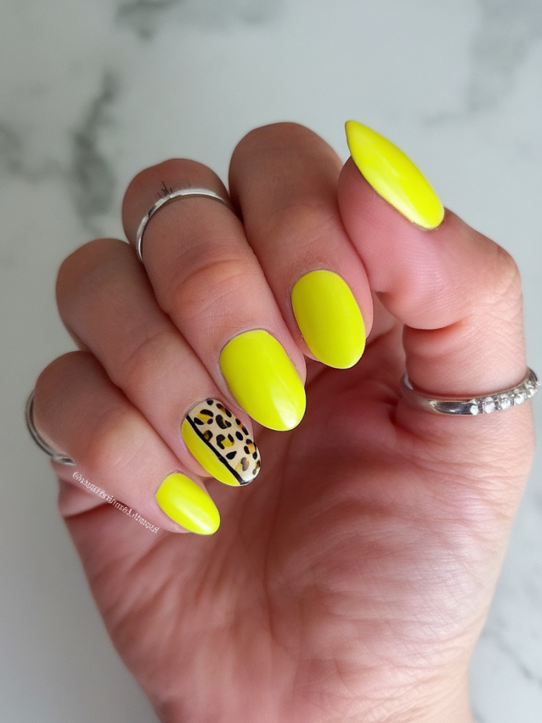 17. Neon Leopard Accent Nails