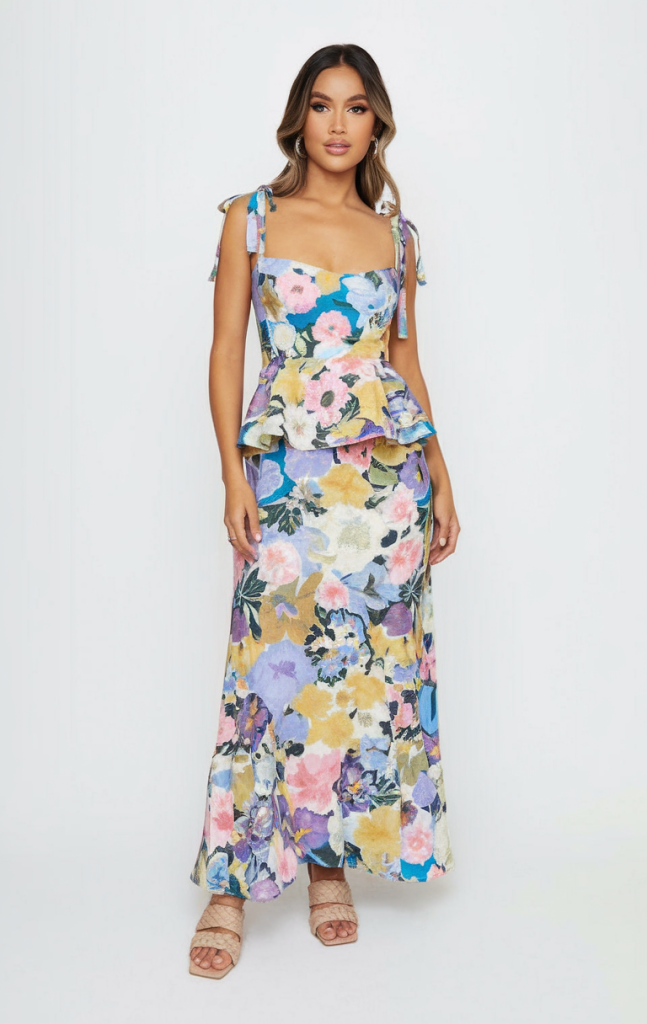 The Peplum Perfection: Bold Floral Midi Set