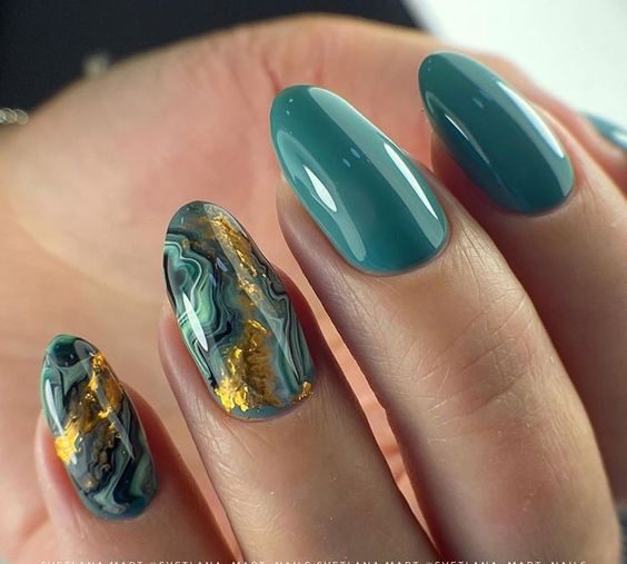 Marble designs on oval nails are a work of art. They give off a luxurious vibe that’s hard to ignore.