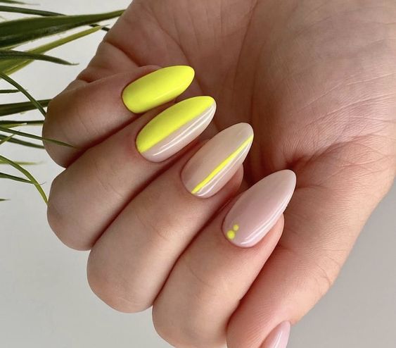 Neon colors on oval nails are a bold choice that screams summer. They’re perfect for festivals or a night out.