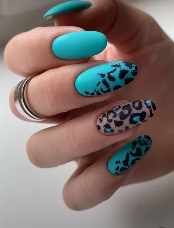 Inspired by the sea, ocean blue oval nails are a refreshing choice. They remind you of tranquil beach days and cool summer nights.