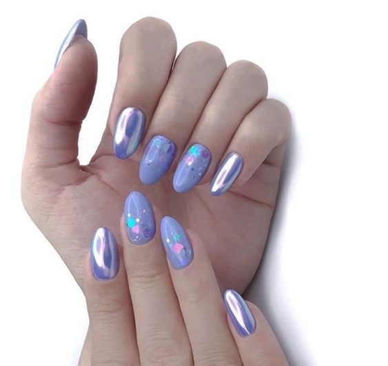 Metallic oval nails can give you that extra edge. They’re modern and can elevate even the simplest outfit.