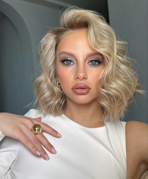 This glamorous lob (long bob) features soft, voluminous waves that add depth and dimension. With a side part for added drama, this hairstyle is perfect for evening events, giving a touch of Hollywood elegance.