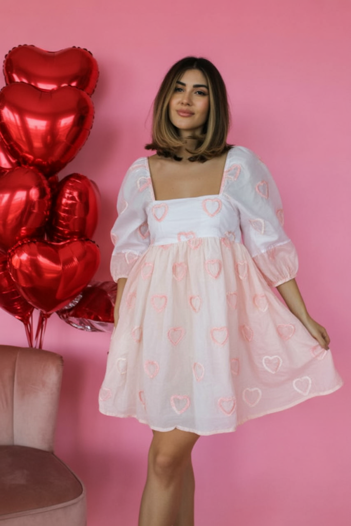 19. Pink Heart-Embroidered Babydoll Dress