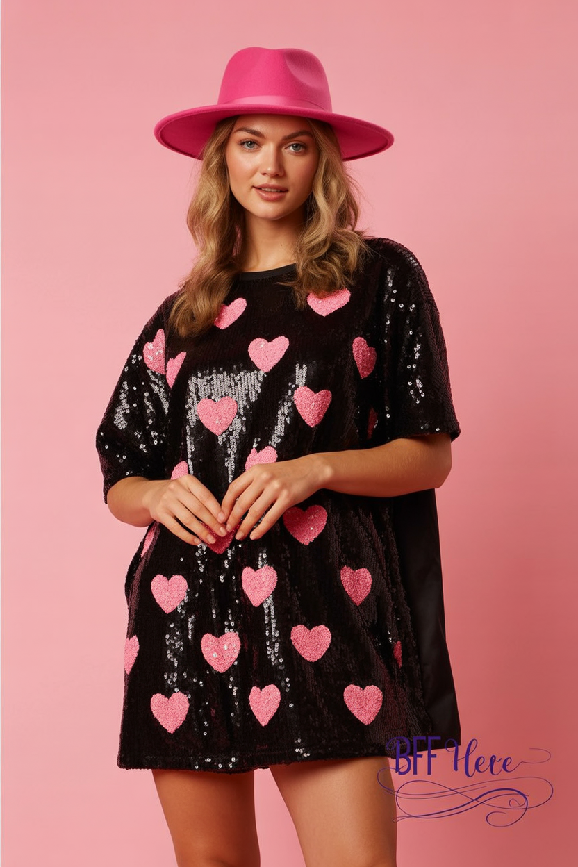 4. Black Sequin Heart Tee Dress
