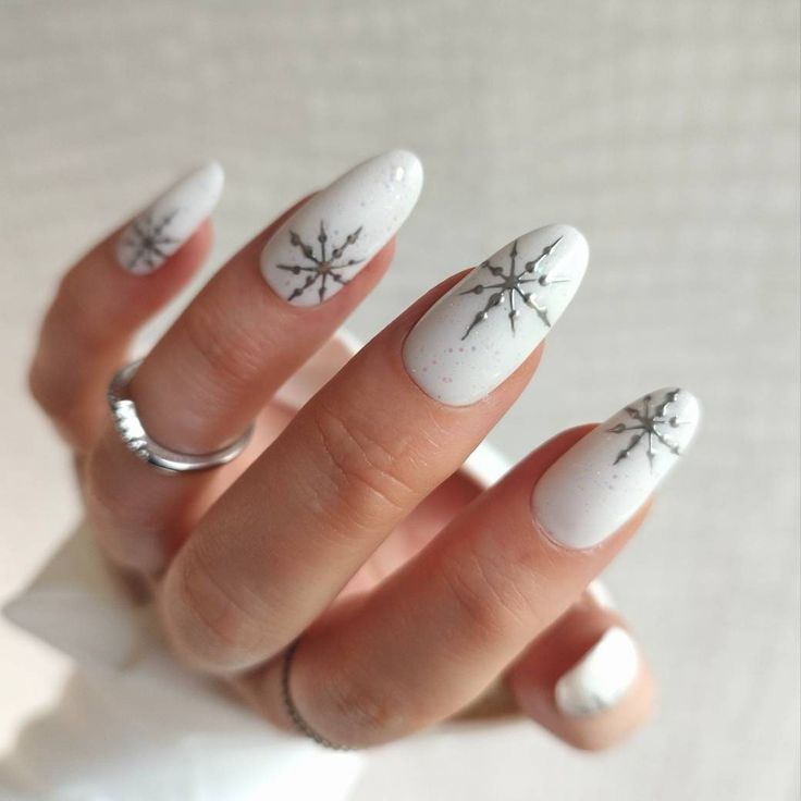 Delicate Snowflake Art on Oval Nails