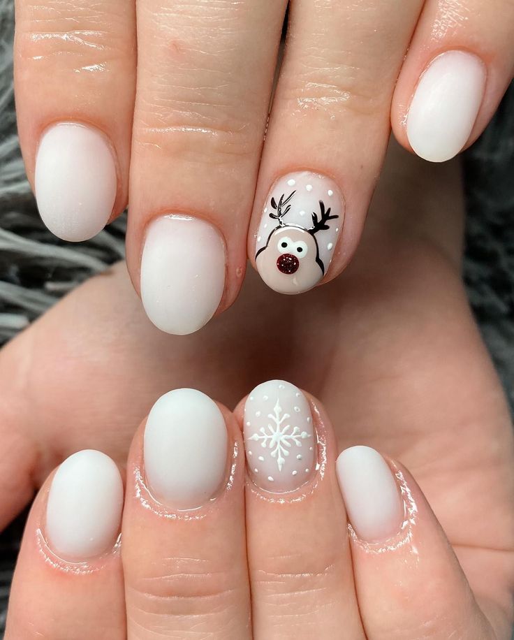 This nail design is ideal for holiday parties or family gatherings. The reindeer detail adds a cute and playful element, while the snowflake keeps it seasonally appropriate.