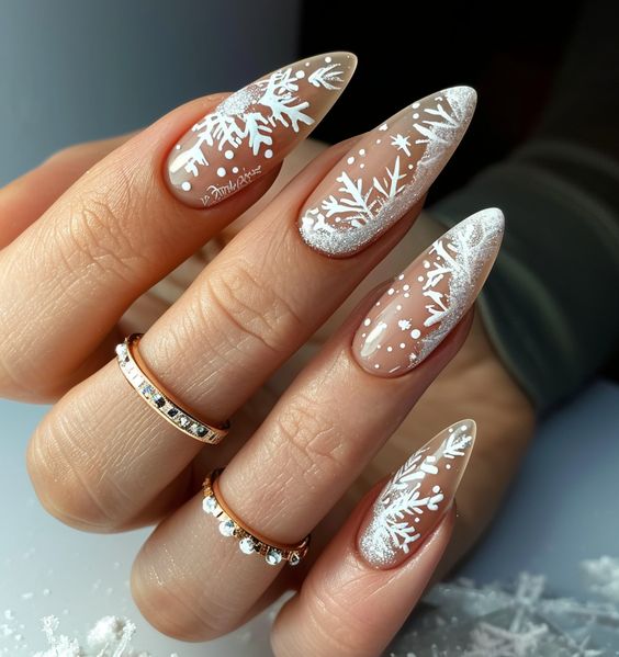 Snowflake Fantasy on Almond Nails
