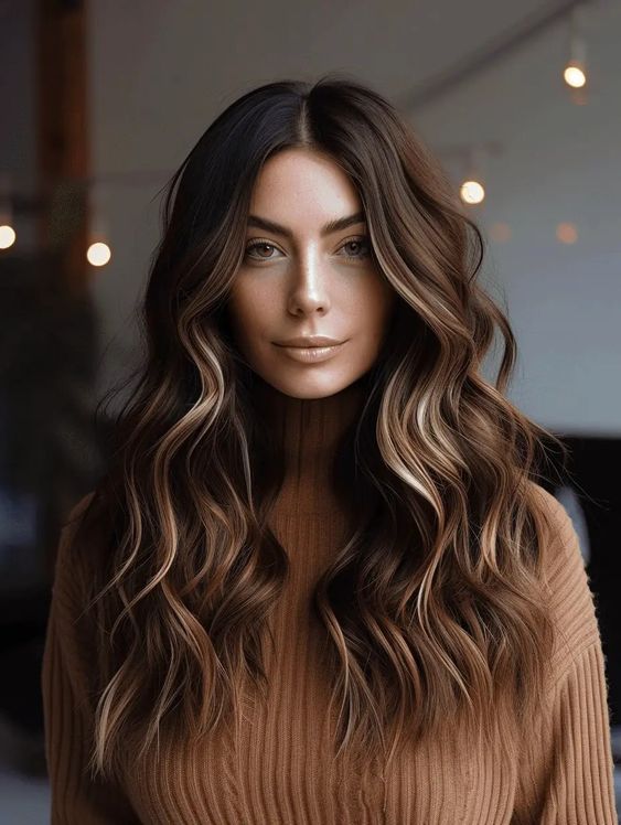 For a more natural yet luxurious look, consider warm chestnut balayage. This trend blends rich chestnut tones with golden highlights, creating a sun-kissed effect that brightens long or shoulder length hair. It’s perfect for brunettes who want to add depth and dimension without committing to a full color change. This style suits women with medium to dark skin tones and works well with brown or hazel eyes.
