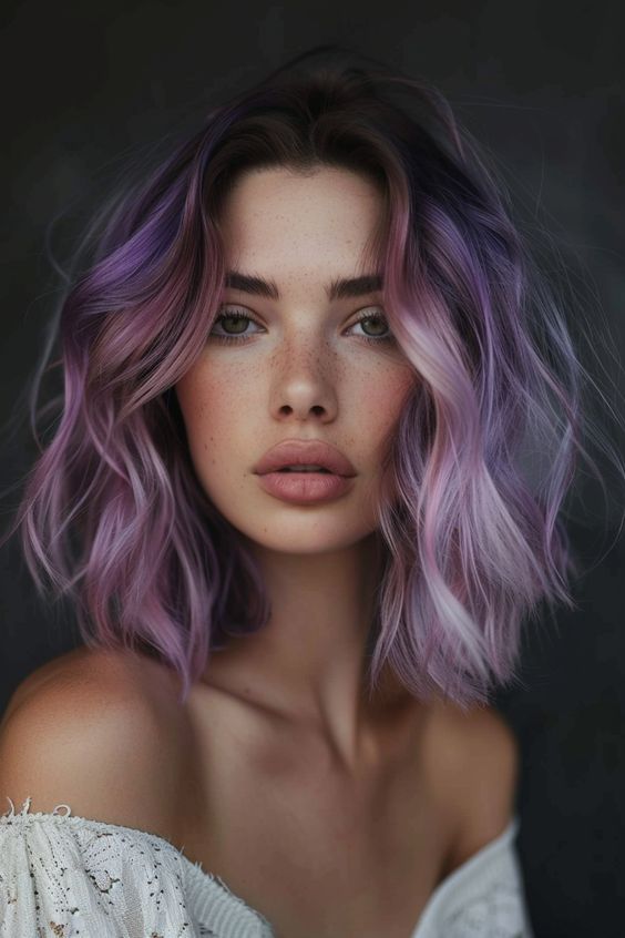 Blending the mysterious allure of dark roots with the soft pastel tones of lavender, the smoky lavender ombre is one of the most sought-after hair dye choices for 2024. This trend is perfect for brunettes looking to experiment with color without fully committing to a bright hue. The transition from dark roots to lavender tips is flattering for oval or square face shapes and pairs beautifully with hazel or brown eyes.