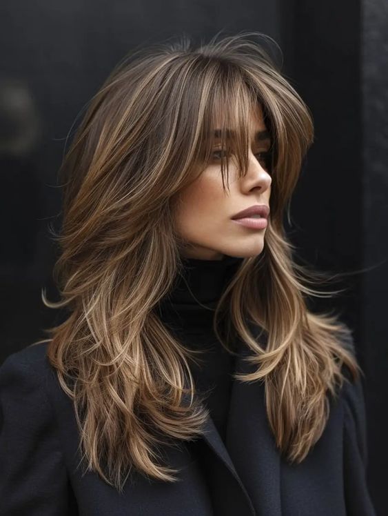 The modern shag is making a significant comeback this winter, and it’s an excellent hair dye for winter color trends. This layered look with ash blonde highlights offers a fresh and dynamic style perfect for shoulder length hair. Ideal for brunettes who want to lighten up for the colder months, this look adds volume and texture, making it a standout choice. It’s especially flattering on those with oval or heart-shaped faces and pairs beautifully with light or hazel eyes.
