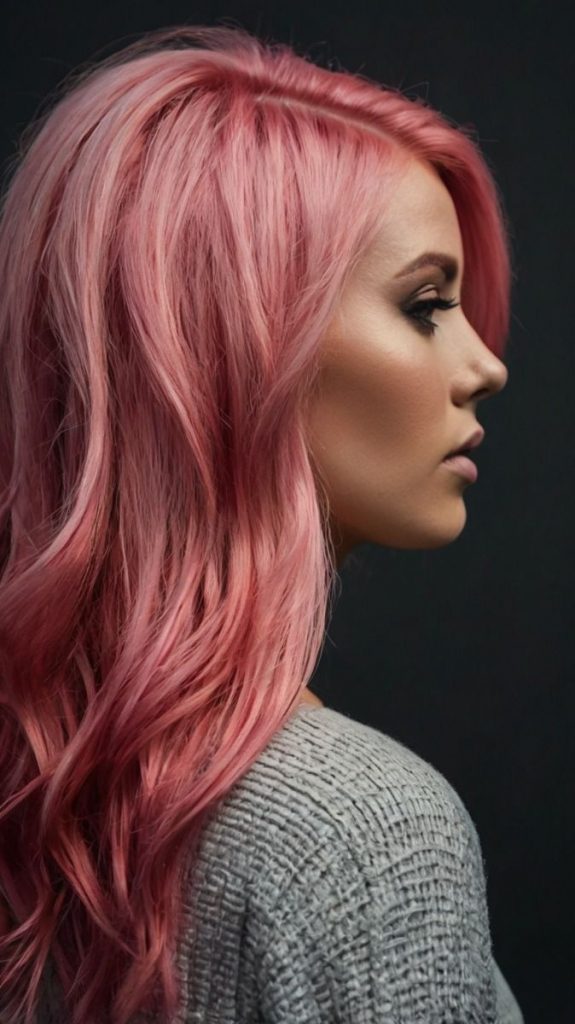 To achieve this delicate color, your stylist will start by lightening your hair to a pale blonde before applying the dusty rose toner. To maintain the softness of the pink, use a color-safe shampoo like Joico’s Color Balance Pink, and avoid excessive heat styling to preserve the hue.