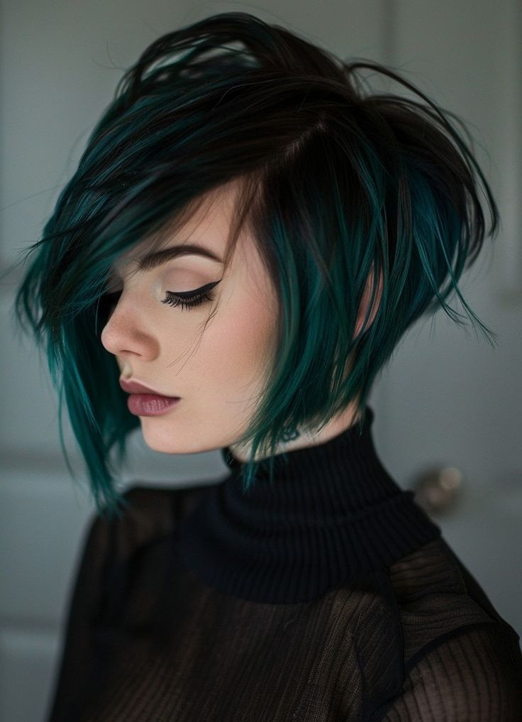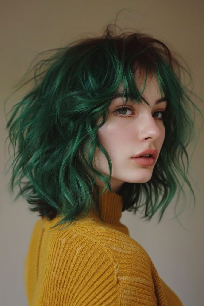 For a bold, festive look, emerald green waves are the way to go this winter. This vibrant color is perfect for dark hair and adds a striking pop of color that’s sure to stand out. Emerald green works best on shoulder length to long hair, particularly for women with cool undertones. It’s a fantastic choice for holiday parties or any event where you want to make a bold statement.