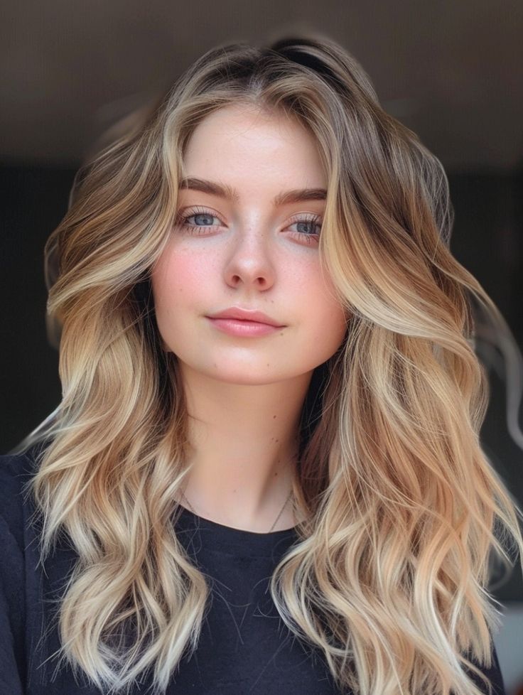 If you’re a blonde who wants to keep it light and fresh, buttery blonde highlights are the way to go for 2025. This color trend offers a warm, sun-kissed effect that brightens the face and adds depth to long hair. Perfect for women with light to medium skin tones, these highlights blend seamlessly with natural blonde or light brown bases, making it an ideal choice for any winter event.