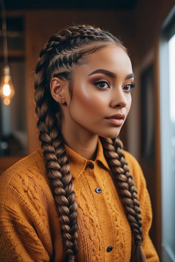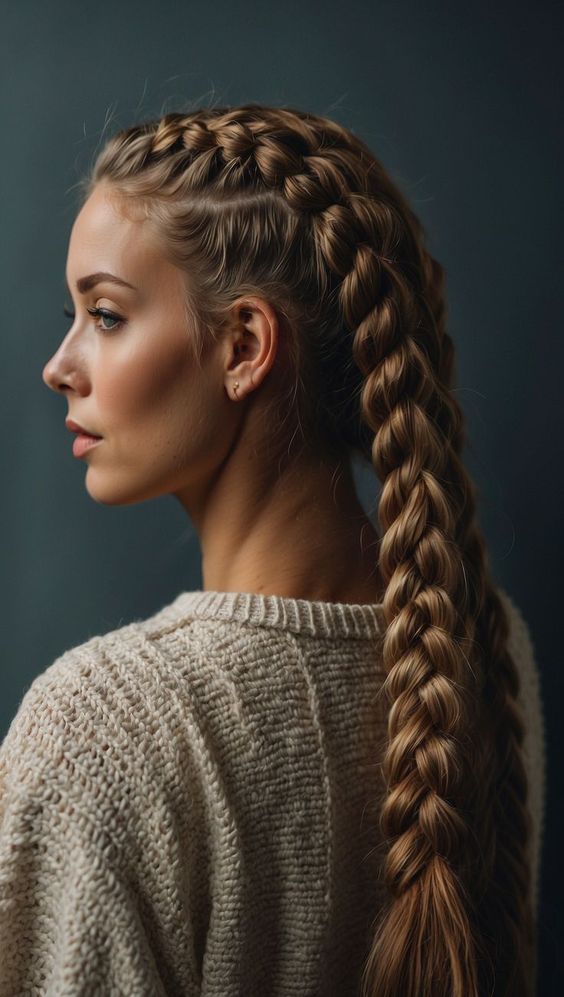 Braids are always a winter staple, and these double Dutch braids are perfect for long hair lovers who want to keep their hair stylishly secured. This look is not only practical for winter activities, like skiing or hiking, but also incredibly fashionable, adding a sporty yet feminine touch to your winter ensemble.