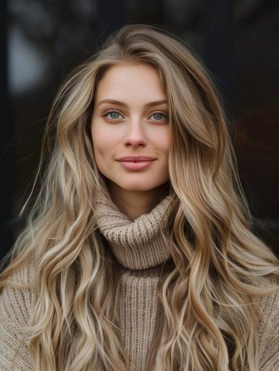 Winter is the perfect season to embrace long hair and these luxurious waves are a testament to that. The soft, voluminous waves cascade effortlessly, providing warmth and glamour. This hairstyle is ideal for long hair and works beautifully for winter weddings, holiday parties, or even a casual day out. The natural blonde highlights add dimension and a sun-kissed glow, which is especially striking against the muted tones of winter fashion.