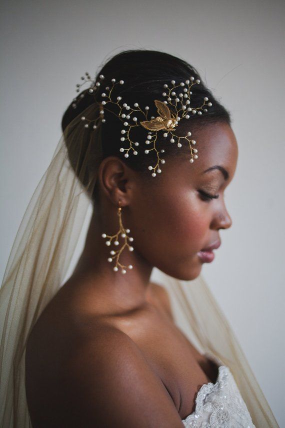 This sleek low bun is the epitome of chic elegance, making it a stunning option for a winter wedding. The hair is smoothed back into a low, compact bun at the nape of the neck, with a rhinestone comb adding just the right amount of sparkle. This hairstyle is particularly flattering for black women, as it enhances the natural beauty of the hair while offering a polished and sophisticated finish. It’s a great choice for brides who want a look that’s both understated and glamorous, ensuring all eyes are on the bride’s radiant smile.